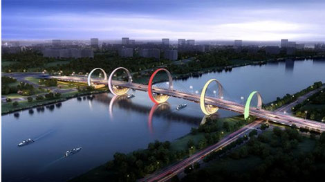 紅壁巖大橋設(shè)計理念——玉璧連環(huán)(全橋首座鋼圓環(huán)主塔斜拉橋)